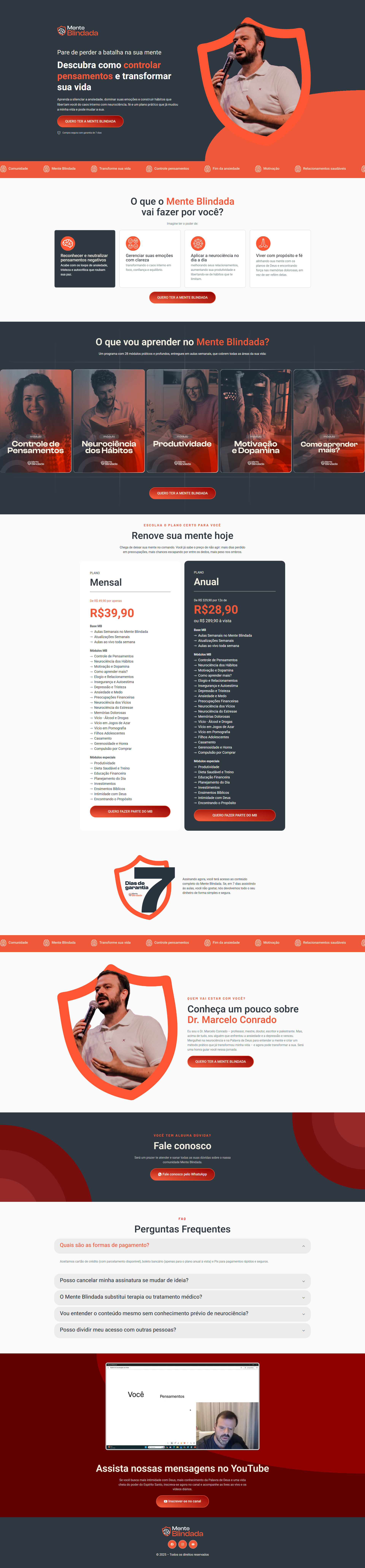 Uma página de alta conversão desenvolvida para a plataforma de cursos Mente Blindada, apresentando de forma objetiva e profissional, gerando impacto e mais vendas.